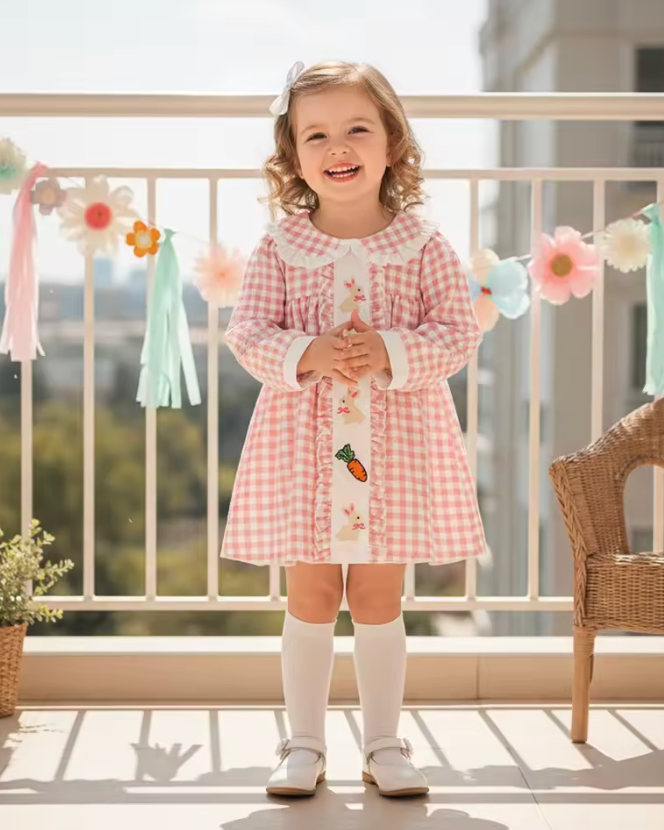 Smocked Dress | Bunnies & Carrots Gingham - PREORDER