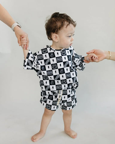 Checkered Smiley Top & Pants Set | Black - PREORDER