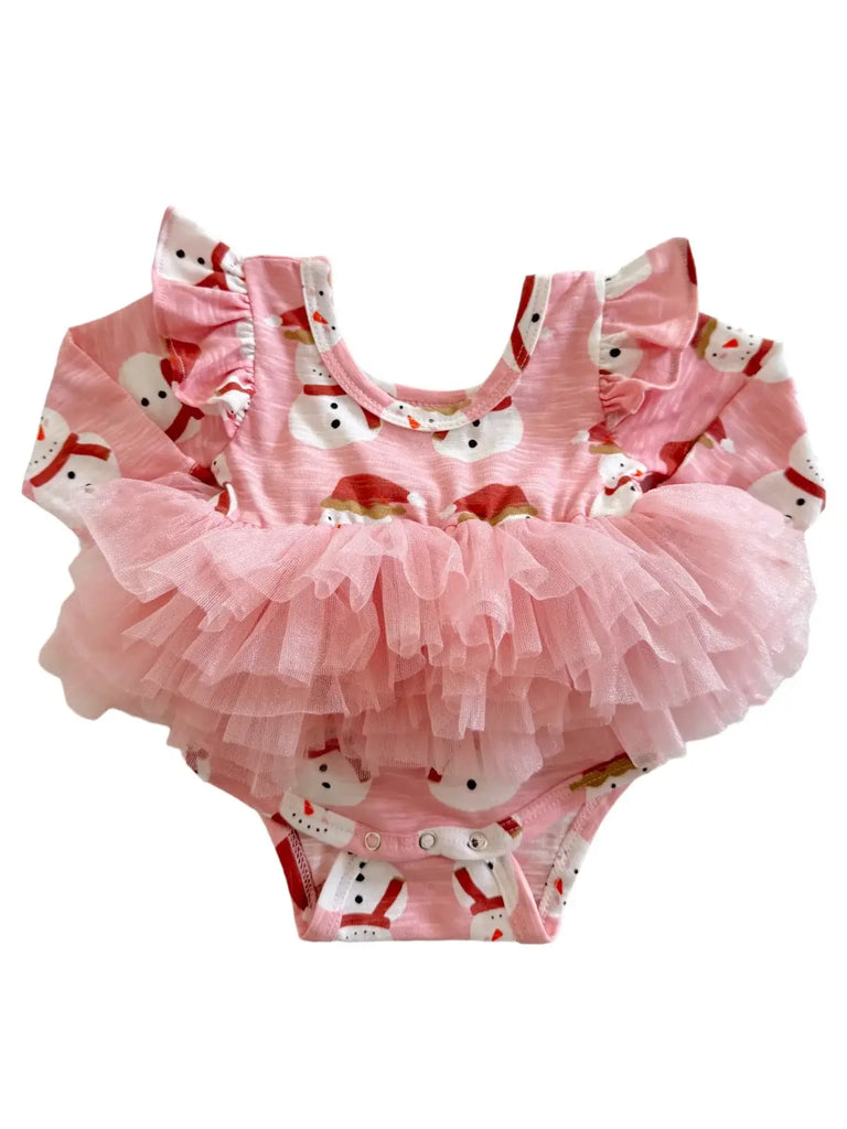 Tutu Long Sleeve Bodysuit | Pink Snowman - PREORDER