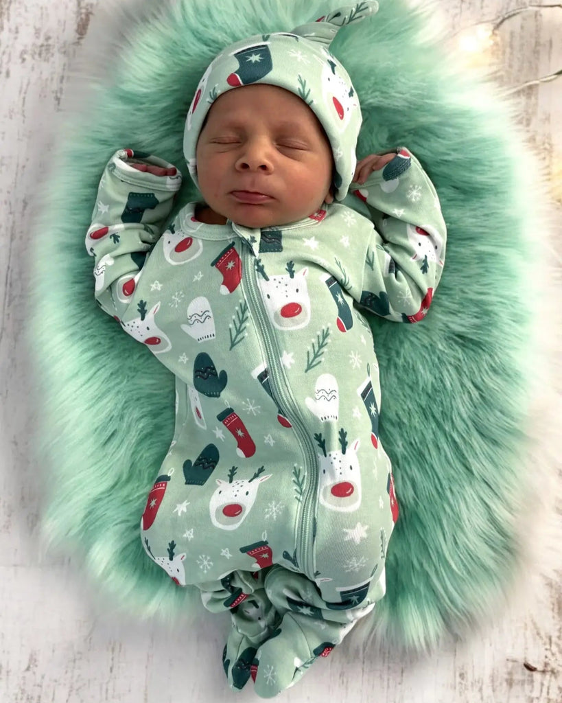 Zip Footie Romper | Green Reindeer - PREORDER
