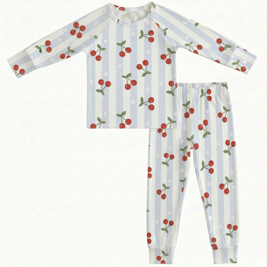Milk Silk Top & Pants Set | Cherry Blossom Stripe - PREORDER