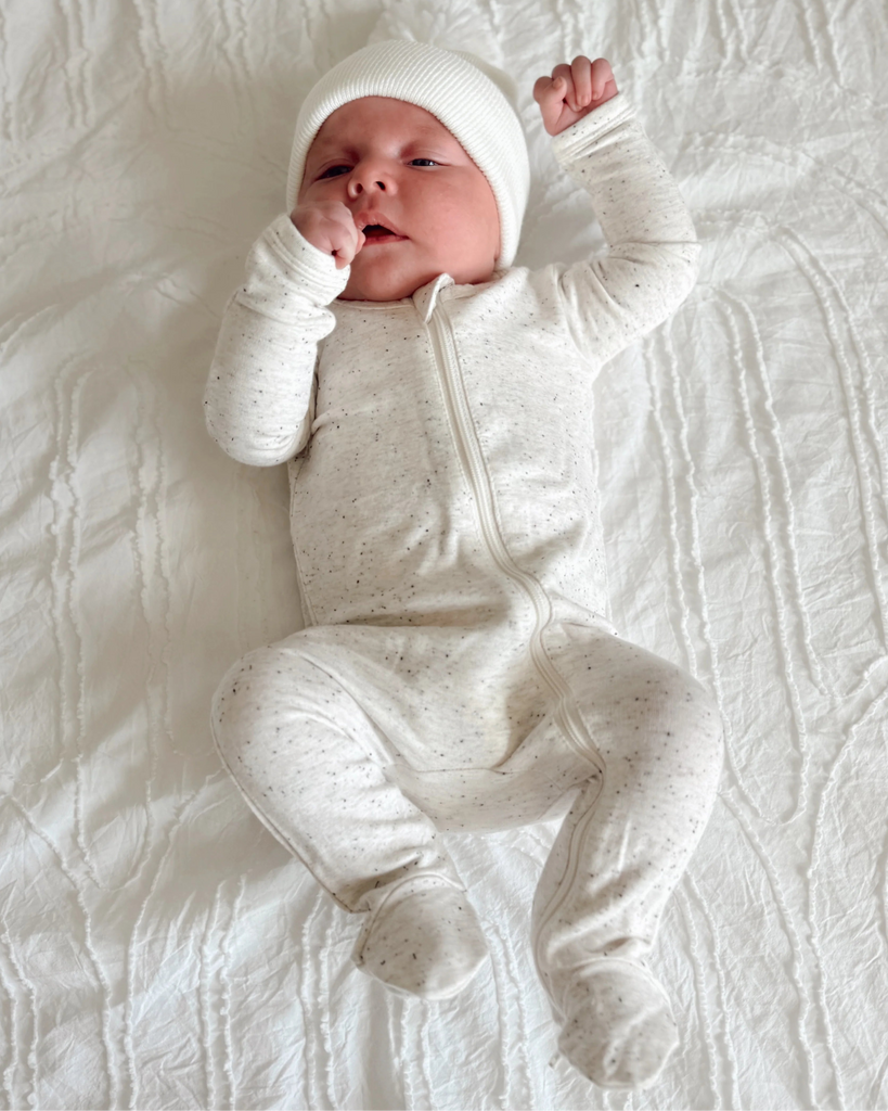 Speckle Zip Footie Romper | Dove - PREORDER