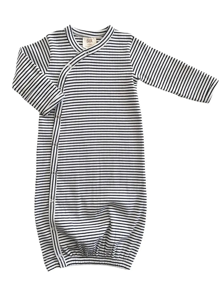 Organic Ribbed Gown | Black Stripes - PREORDER
