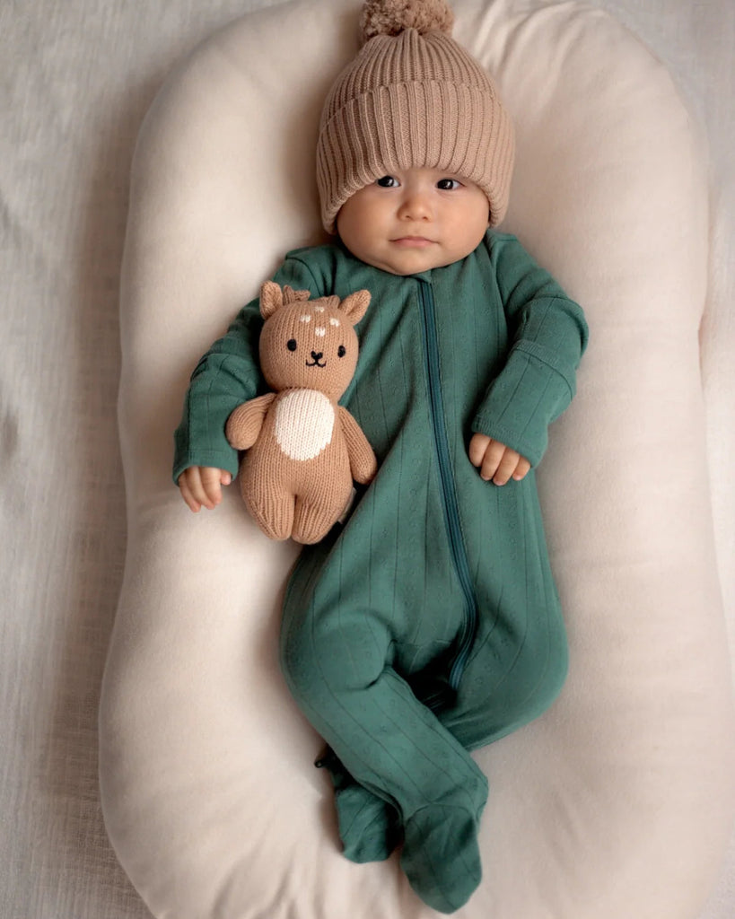 Organic Pointelle Zip Footie | Pine - PREORDER