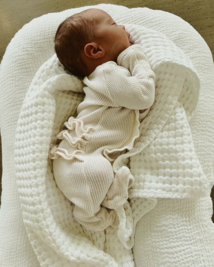 Introducing our new 2-Way Zip Ruffle Footie with improved sizing! Designed to fit perfectly without the need to size up, this cozy footie features a convenient two-way zipper for easy diaper changes and adorable ruffle details for added charm. Made from 100% organic cotton, this footie is as soft as it is adorable, providing a gentle, breathable layer for your baby’s delicate skin. The subtle waffle texture offers both warmth and stretch, while the sweet ruffle detailing adds a charming touch to this already-perfect outfit.