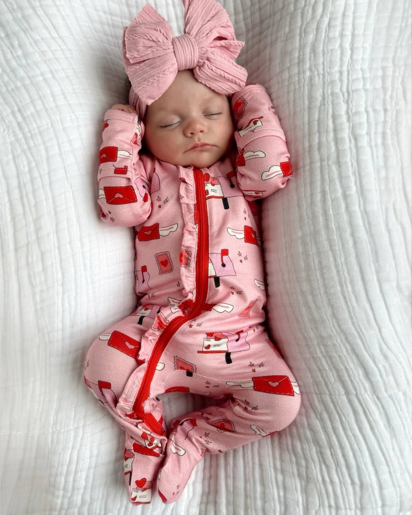 Zip Ruffle Footie Romper | Love Letters - PREORDER