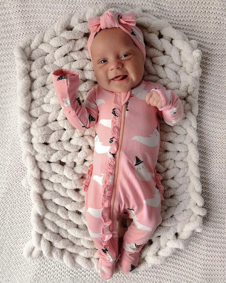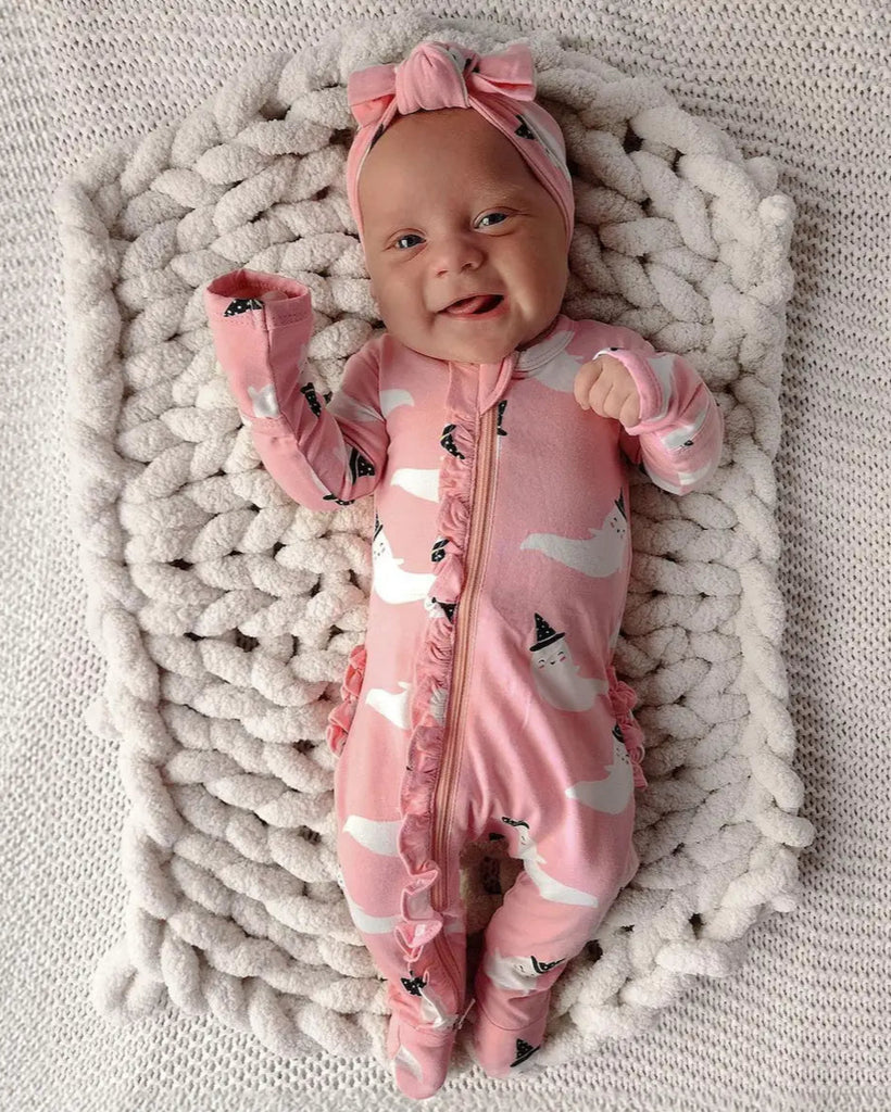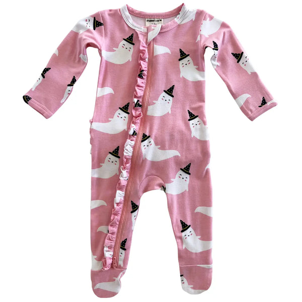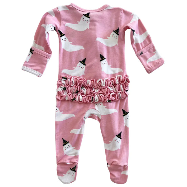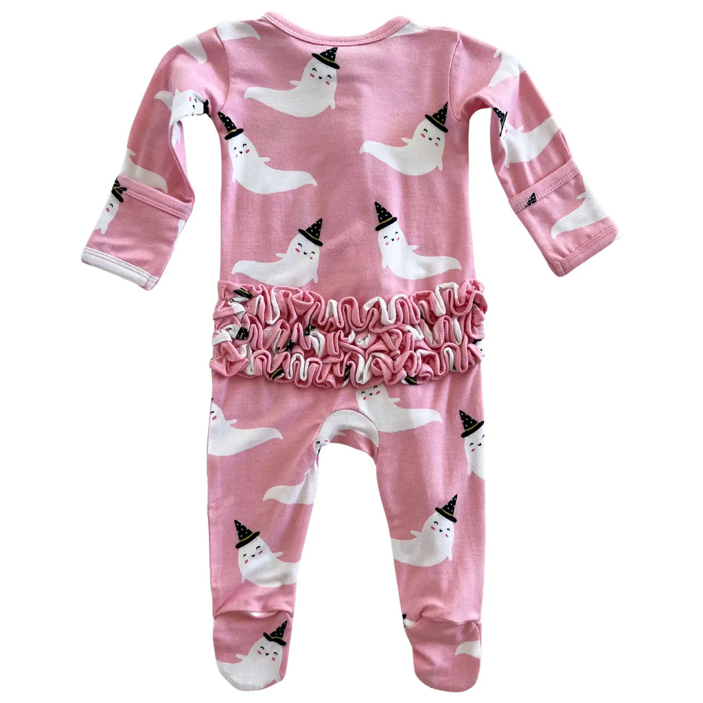 Zip Ruffle Footie Romper | Pink Ghost - PREORDER