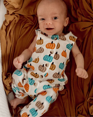 Tank Button Pants Romper | White Pumpkin Mug - PREORDER