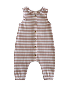 Ribbed Tank Button Pants Romper | Pink - PREORDER
