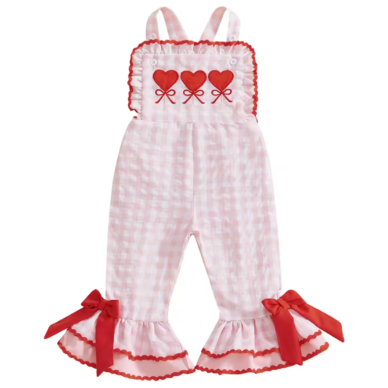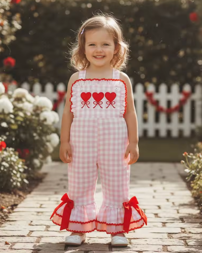 Ruffle Bells Jumpsuit | Hearts Pink Gingham - PREORDER