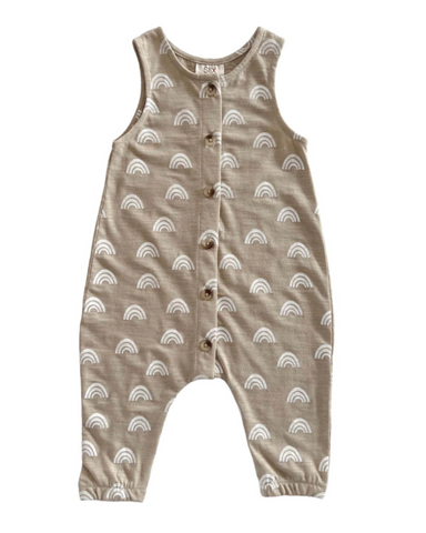 Tank Button Pants Romper | Tan Rainbow - PREORDER
