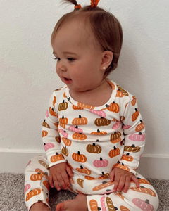 Long Sleeve Bubble Romper | White Pumpkin Mug - PREORDER