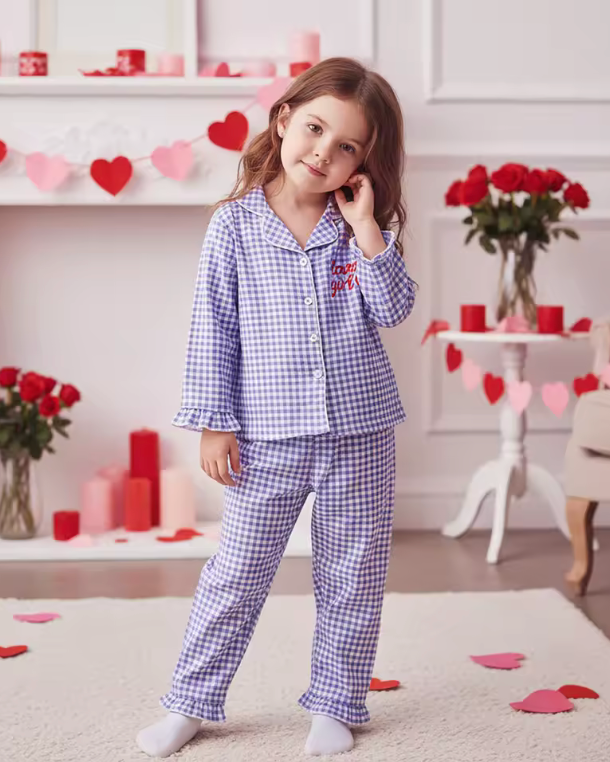 Satin Lounge Set | Purple Gingham Lover Girl - PREORDER