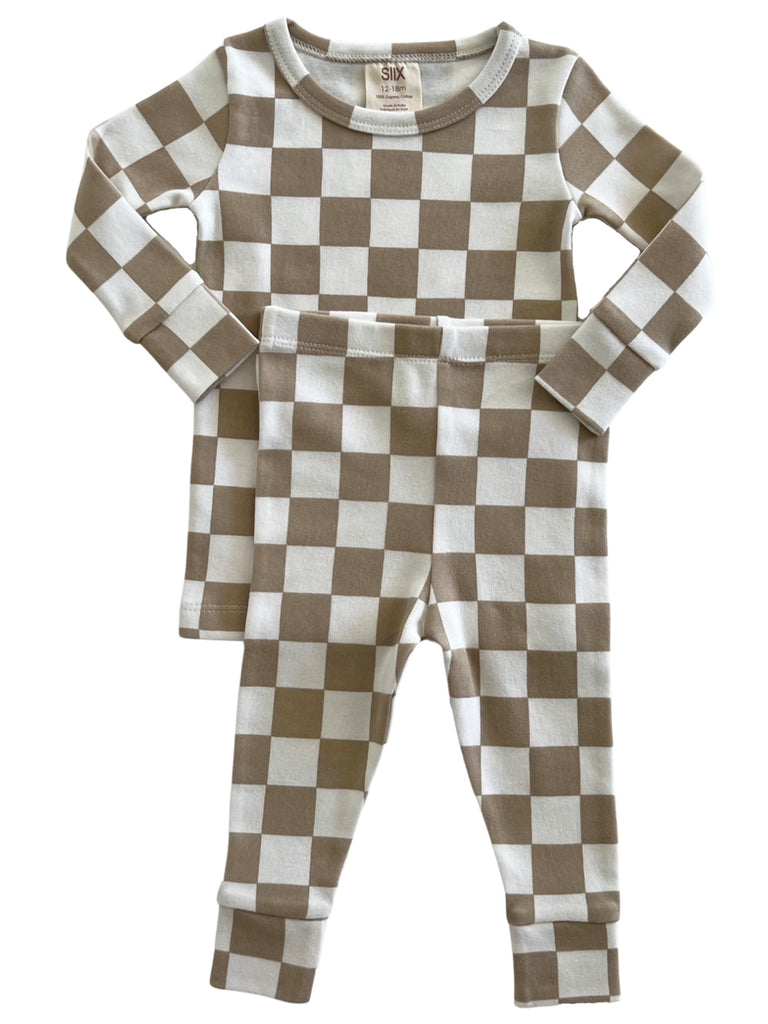 Organic Top & Pants Set | Tiramisu Checkerboard - PREORDER