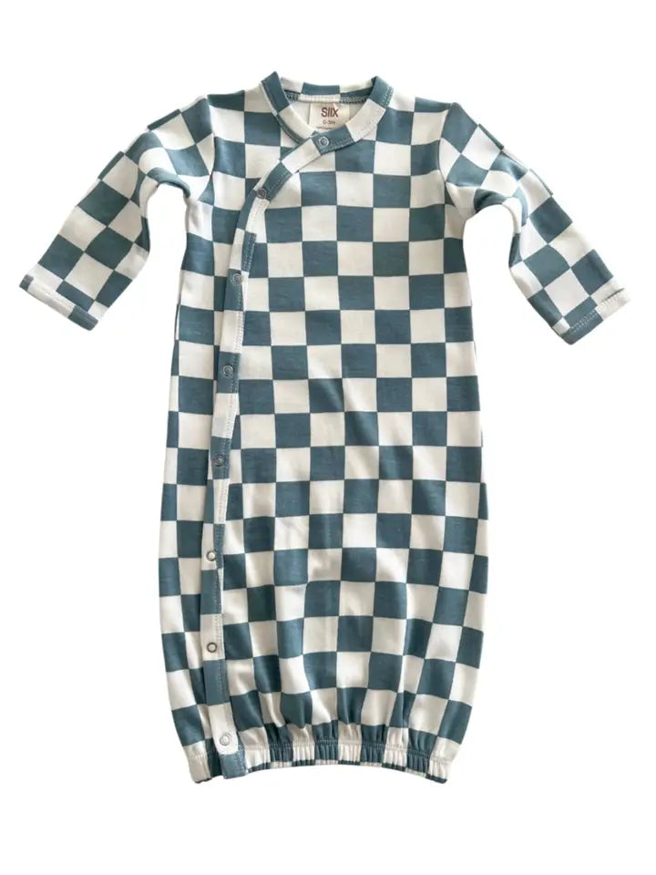 Checkerboard is bold and cheerful: perfect for your little one. On the Organic Gown, now you have ultimate convenience and comfort, too. Newborns can grow with this gown, and parents love how easy diaper changes are. Features side snaps and built-in mitten cuffs.