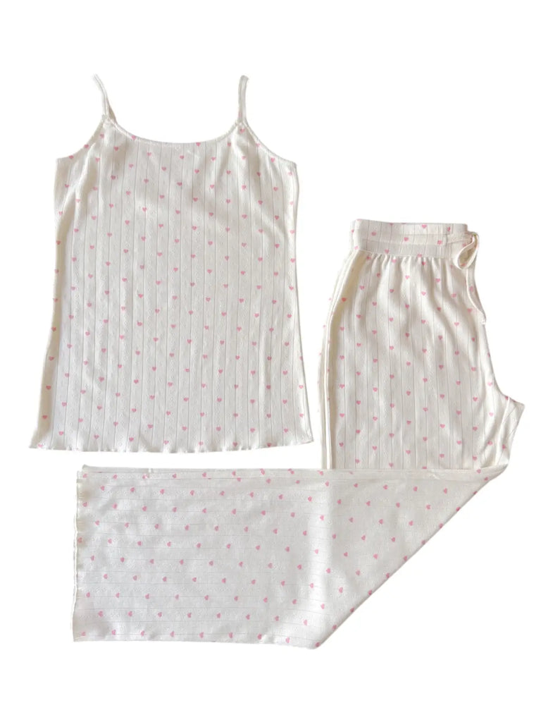 Organic Pointelle Women's Cami Lounge Set | White w/ Pink Heart - PREORDER