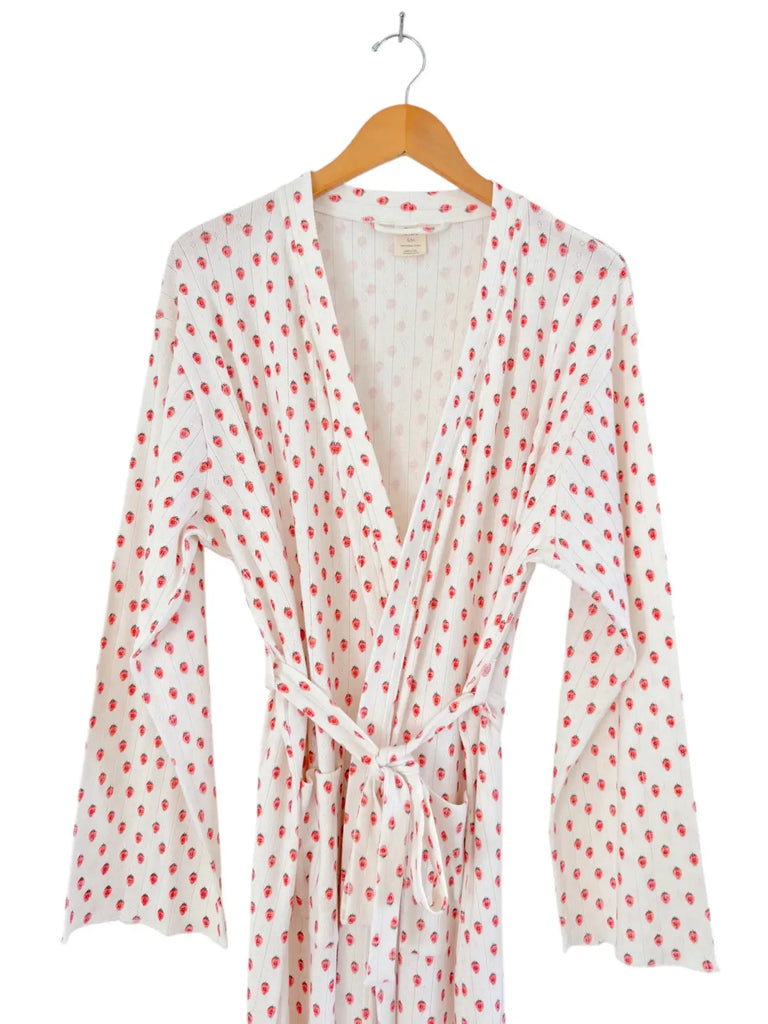 Organic Pointelle Women's Robe | White Strawberry - PREORDER