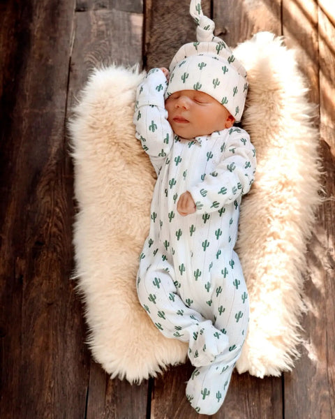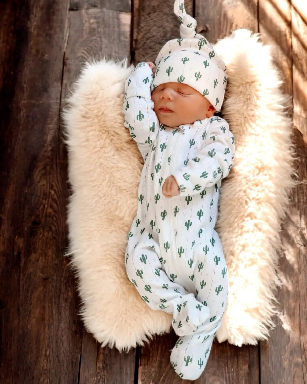 Organic Pointelle Zip Footie | Cactus - PREORDER