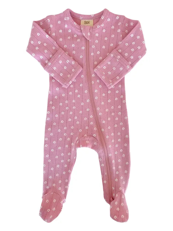 Organic Pointelle Zip Footie | Pink Flower - PREORDER
