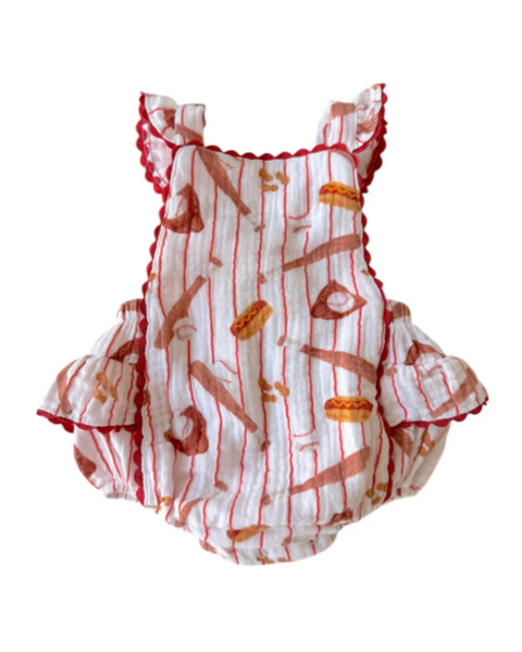 Ric-Rac Ruffle Sunsuit | Baseball Game - PREORDER