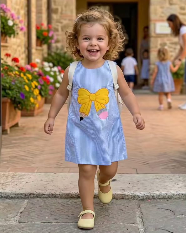 Girls Back to School Dress Sleeveless Round Neck Bow Embroidery Dress Toddler Casual Dress
