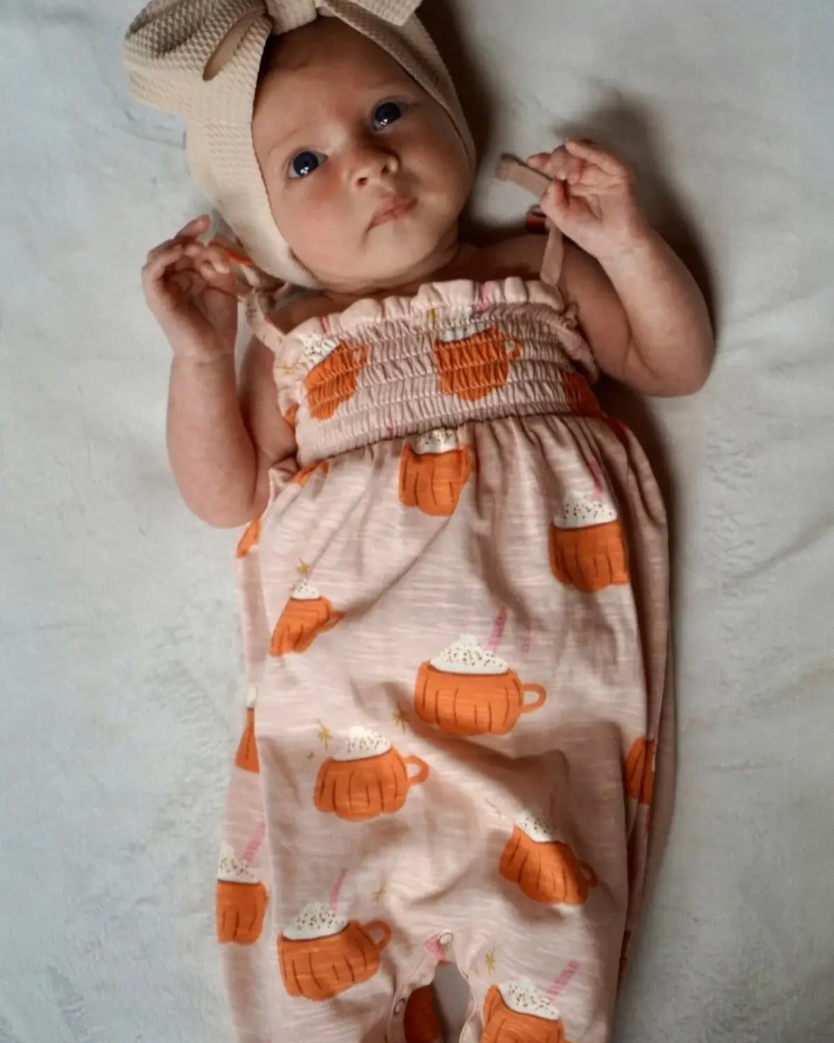 Smocked Ruffle Jumpsuit | Pink Pumpkin Mug - PREORDER