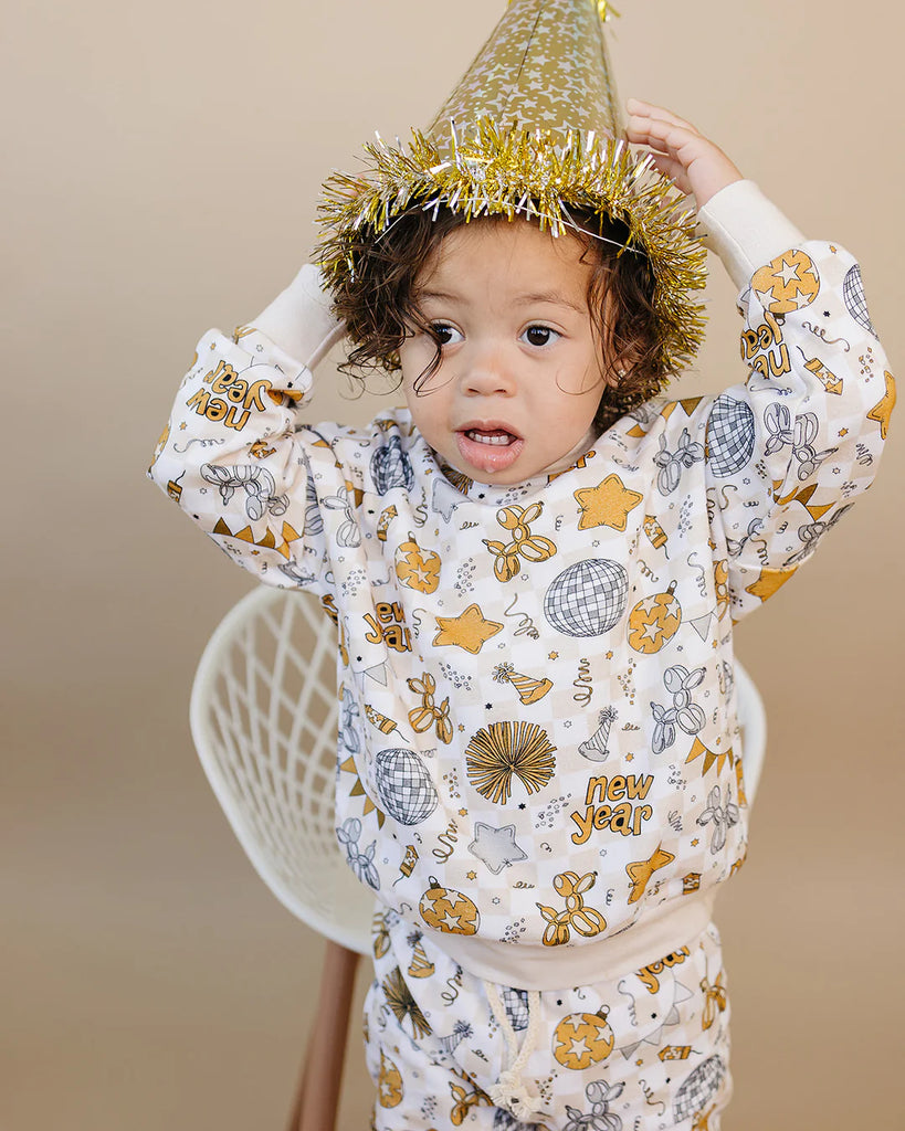 The Jogger Set New Year Vibes is made for celebrating in comfort and style. With a fun, gender neutral festive design and a soft cotton-spandex blend, it keeps your little one feeling cozy and looking cool. Whether ringing in the new year at home or out and about, it’s the perfect outfit for fresh starts and happy memories.
