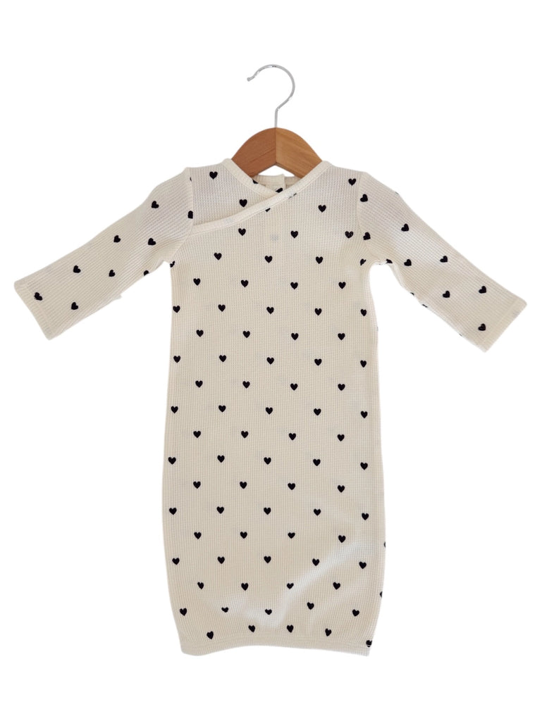 Designed with your baby’s comfort in mind, the gown features a soft elasticized hem, making it easy for quick diaper changes and allowing your little one to stretch and move freely. The fold-over cuffs keep tiny hands warm and prevent scratching, while the gentle organic fabric ensures it’s safe and gentle against delicate skin.