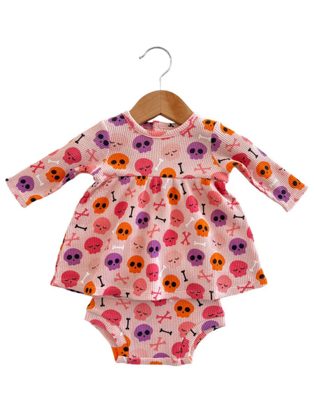 Waffle Simple Dress & Bloomer | Pink Candy Skulls - PREORDER