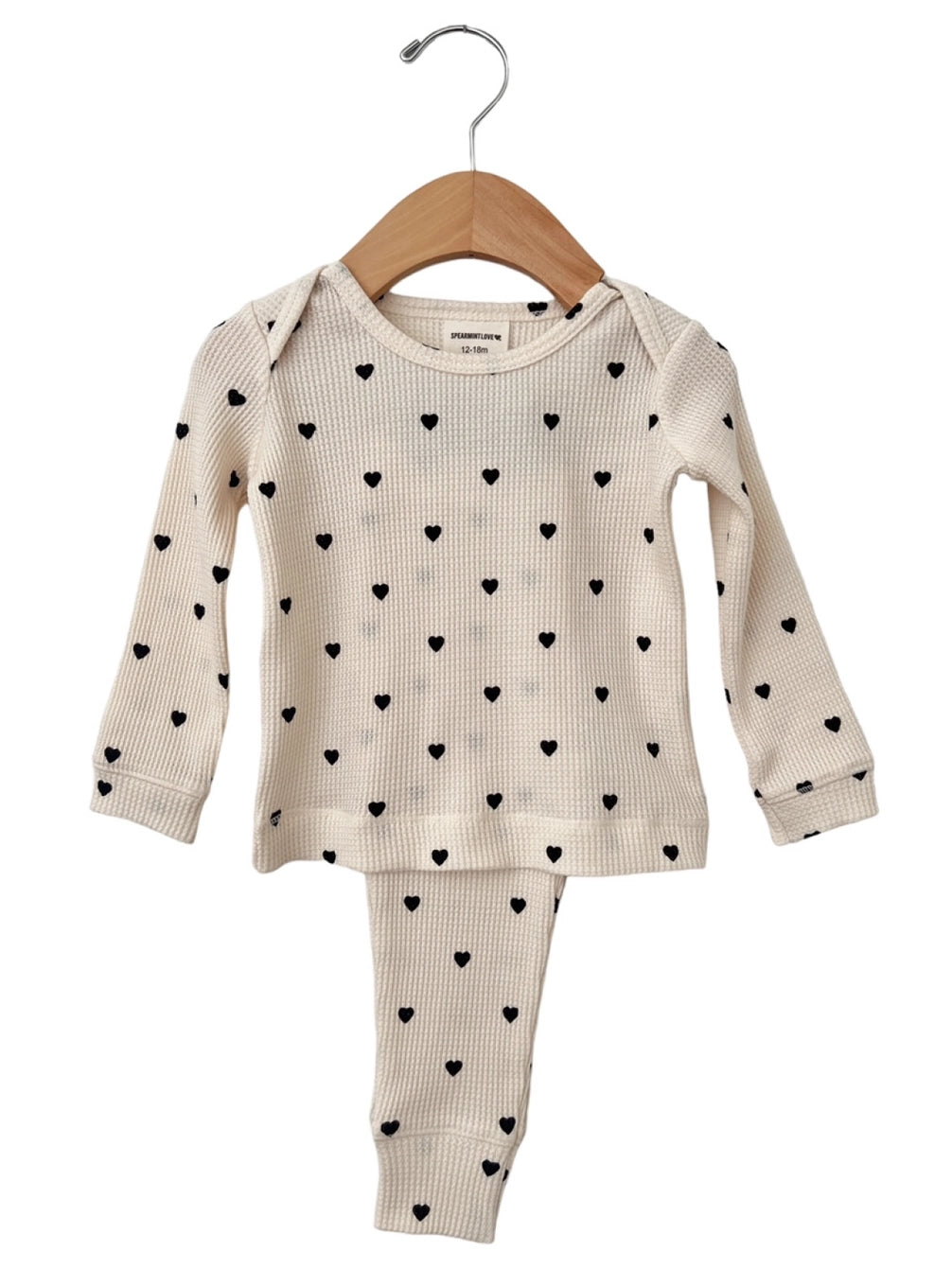Waffle Top & Pants Set | Black Heart - PREORDER