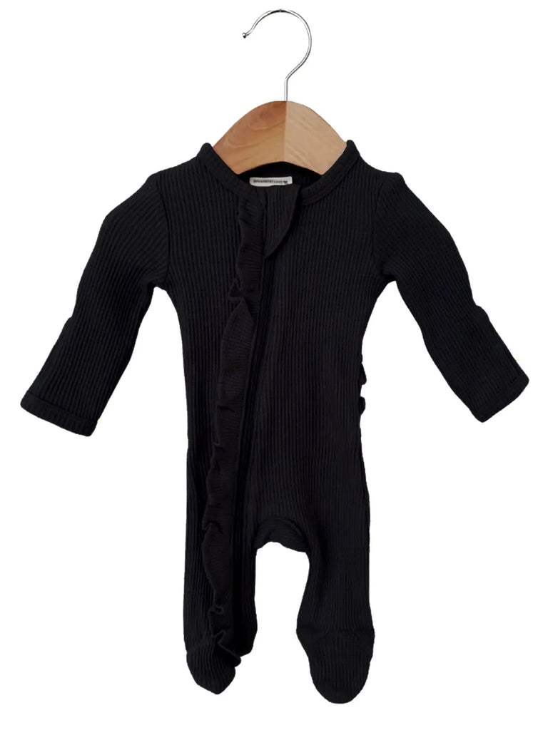 Waffle Zip Ruffle Footie Romper | Black - PREORDER