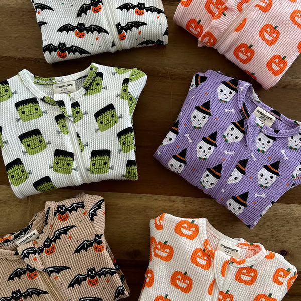 Waffle Zip Footie Romper | Spooky Skeleton - PREORDER