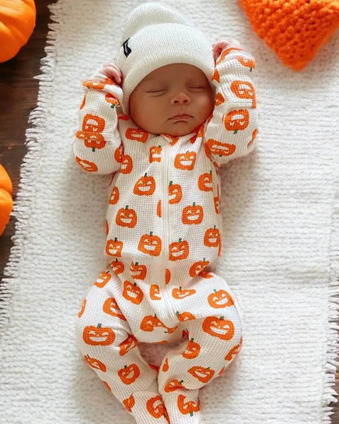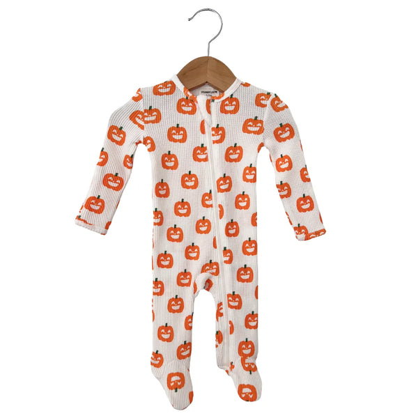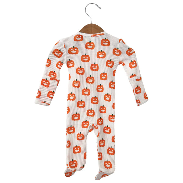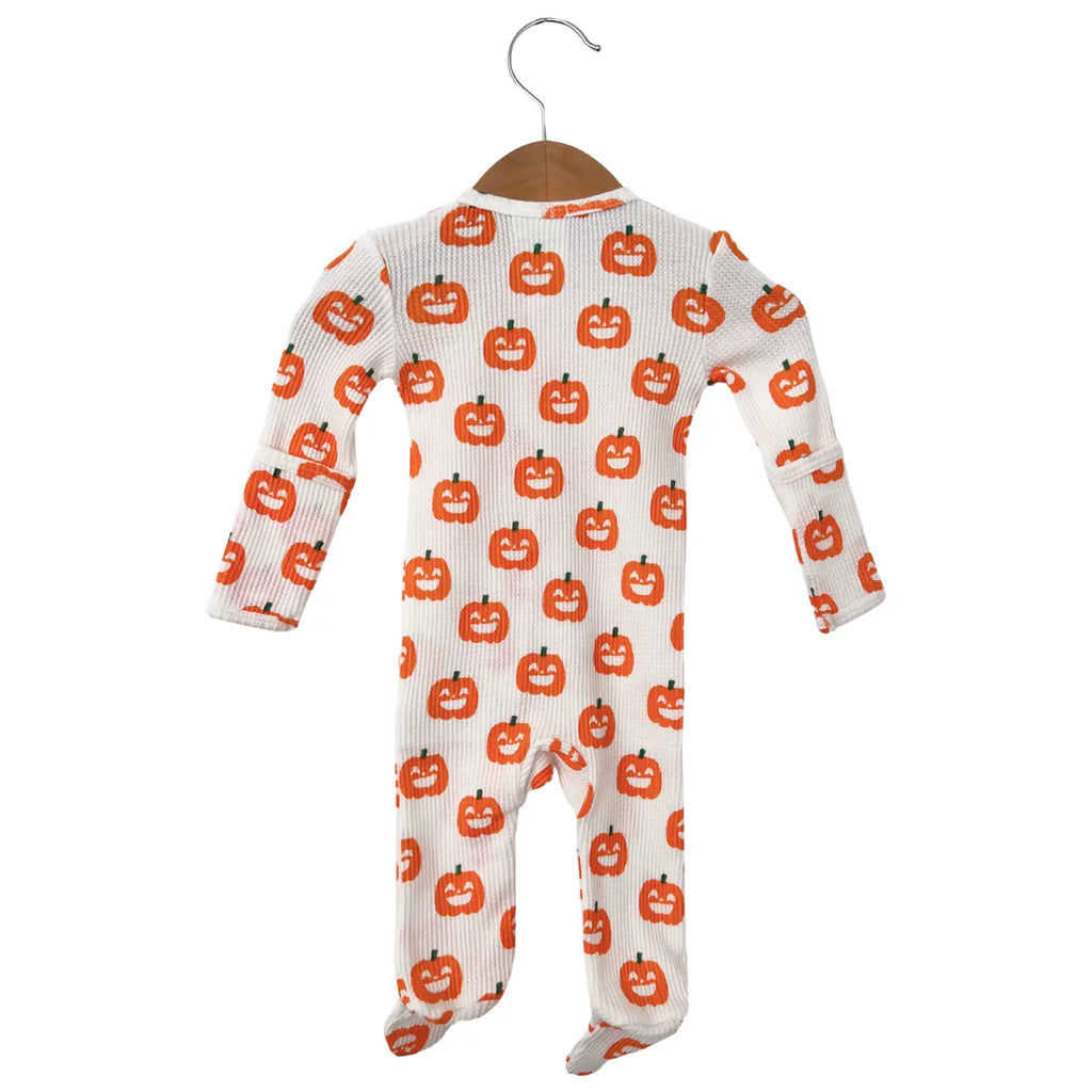 Waffle Zip Footie Romper | White Jack-O-Lantern - PREORDER
