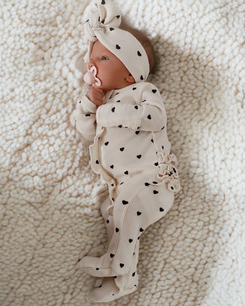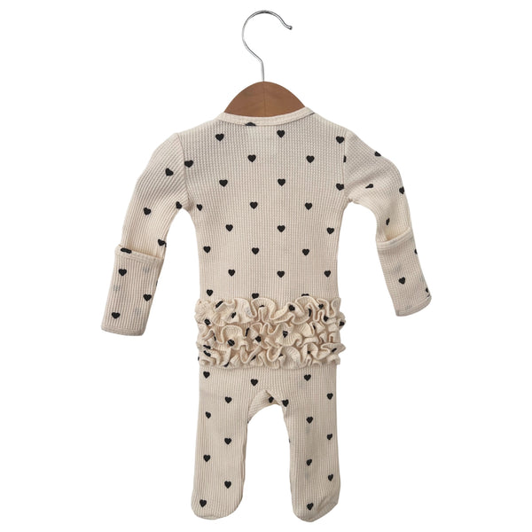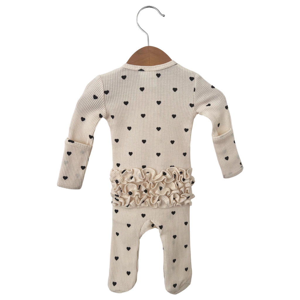 Waffle Zip Ruffle Footie Romper | Black Heart - PREORDER