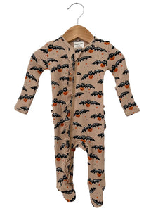 Waffle Zip Ruffle Footie Romper | Tan Trick or Treating Bat - PREORDER