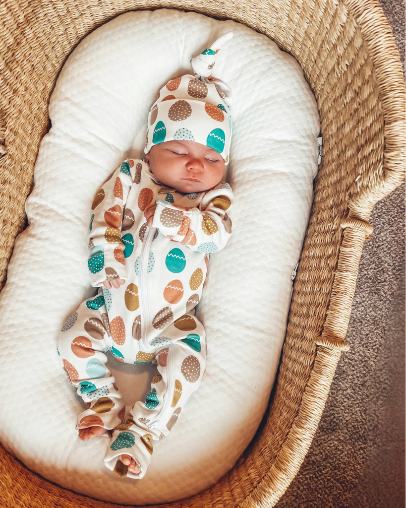 Parents rave about all the features of the Organic 2-Way Zip Romper from the ability to zip easily from the top or bottom to the fold-over mitten and foot cuffs. With just the right mix of bright, neutral, and classic Easter colors displayed on a cute Easter egg print, your little one will be ready to open their basket and hunt for eggs this Easter season.