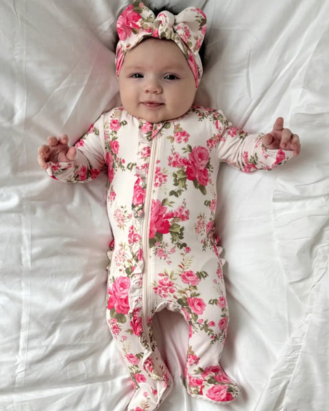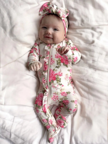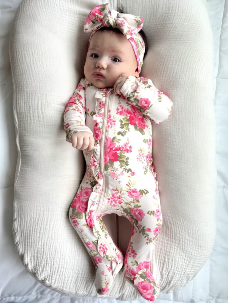 Snuggly, stretchy, and totally in bloom - our Floral Bamboo Collection brings serious softness with 95% viscose from bamboo and just the right amount of stretch. It’s breathable, lightweight, and made for all-day play (or all-day naps). Covered in fresh florals and made for cozy moments, these are the baby essentials that hit different.